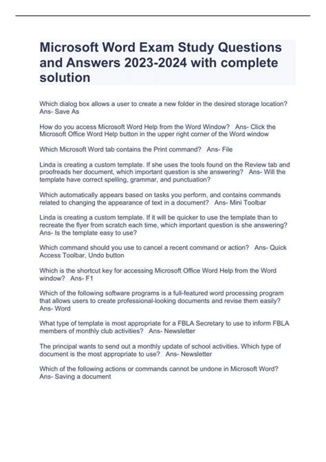 Read Ms Word Exam Questions And Answers Doc